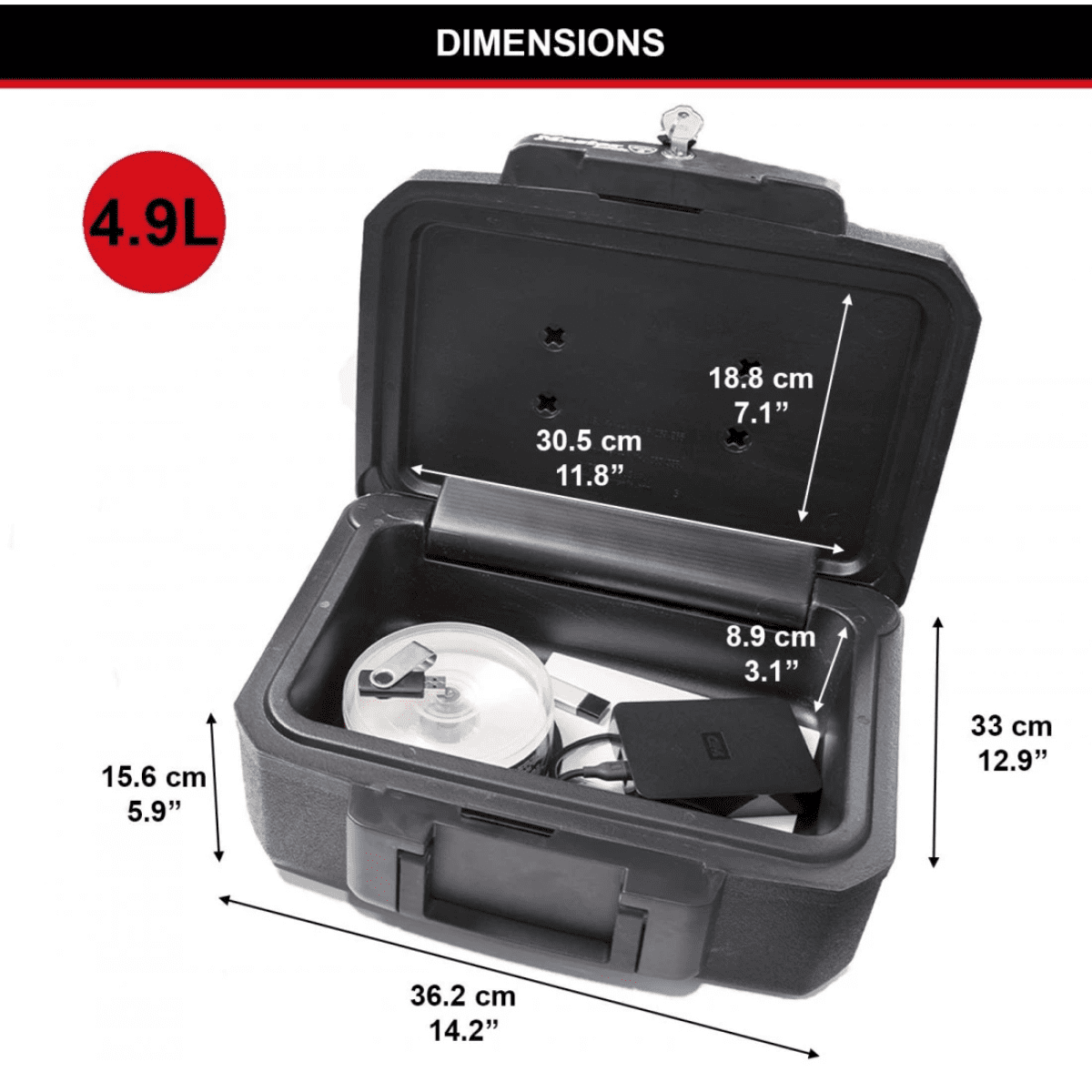 Équipé d’une serrure à clé pour plus de confidentialité et de sécurité, ce coffre empêche l’ouverture involontaire en cas d’incendie. Sa poignée intégrée permet un transport facile, et sa construction brevetée assure une résistance optimale au feu et à l’eau.