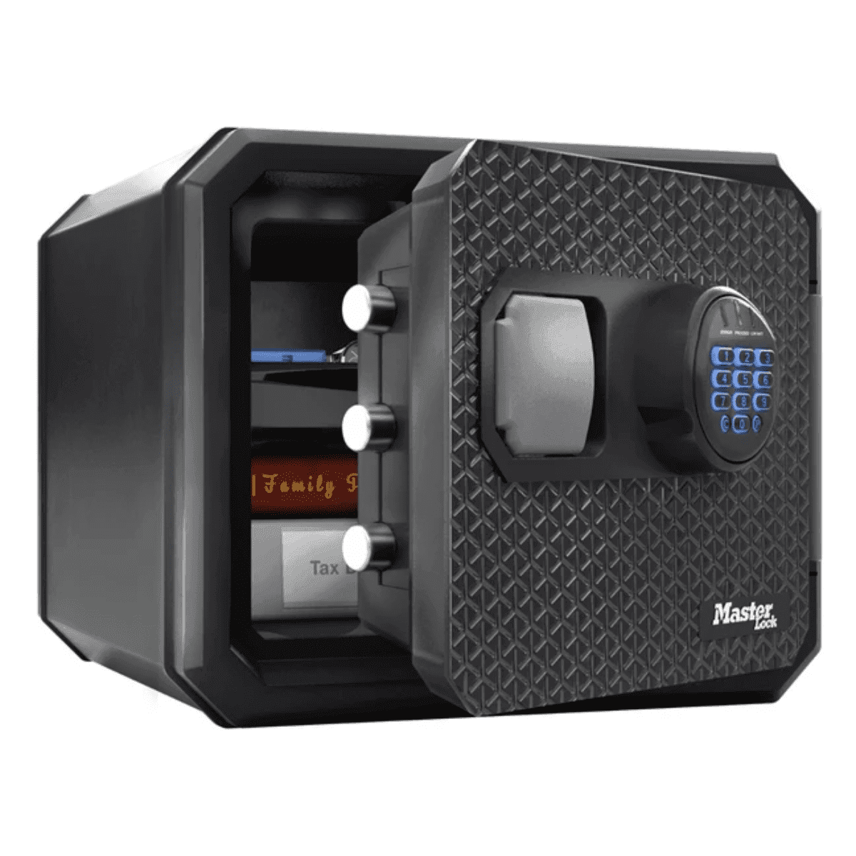 Le coffre-fort format L de Master Lock est conçu pour contenir une grande variété d’objets importants. Vous pouvez y stocker des bijoux, de l’argent liquide, des passeports, des documents papier (jusqu’au format A4), et des supports numériques comme des CD, des clés USB et même des appareils électroniques de petite taille, tels que des tablettes et des disques durs. Sa capacité de 22,9 litres et son intérieur bien organisé avec des étagères réglables et des compartiments supplémentaires permettent une disposition optimale de tous vos biens.